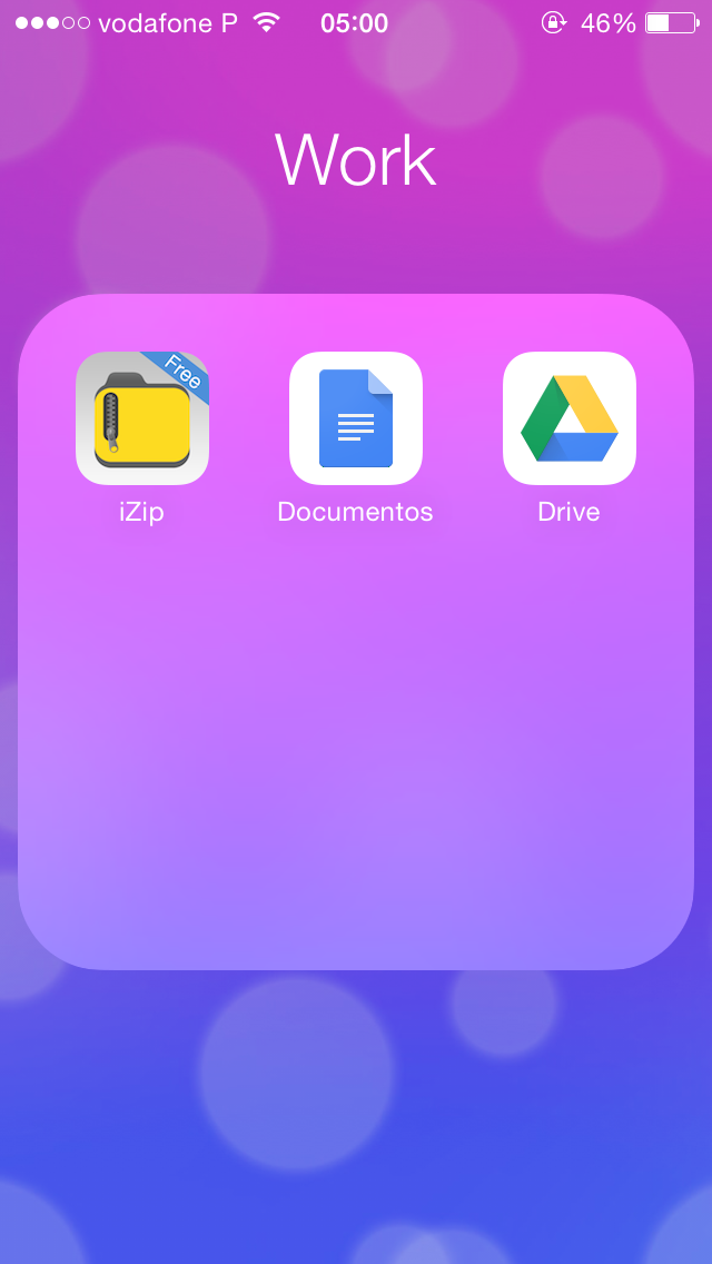 A pasta Work é aquela que contém as três aplicações que mais jeito me dão quando estou no telemóvel e preciso de consultar alguma coisa recebida por e-mail.
