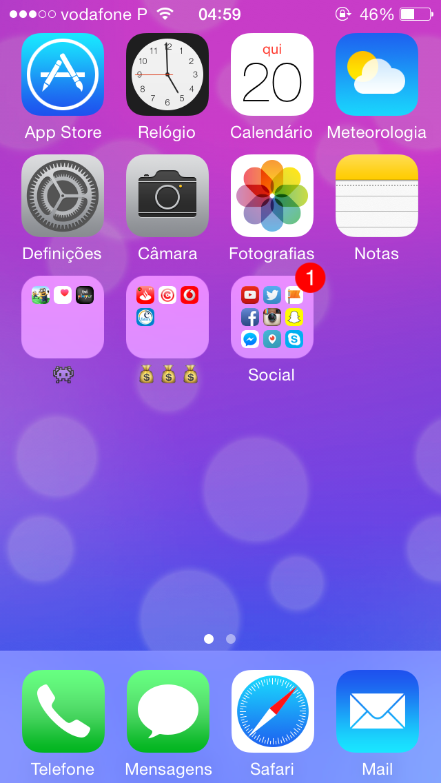 Por fim tenho a pasta que denominei de iPhone, porque é a pasta onde meti todas as aplicações que vieram com o telemóvel e que eu RARAMENTE utilizo, por isso nem me pronuncio sobre elas.